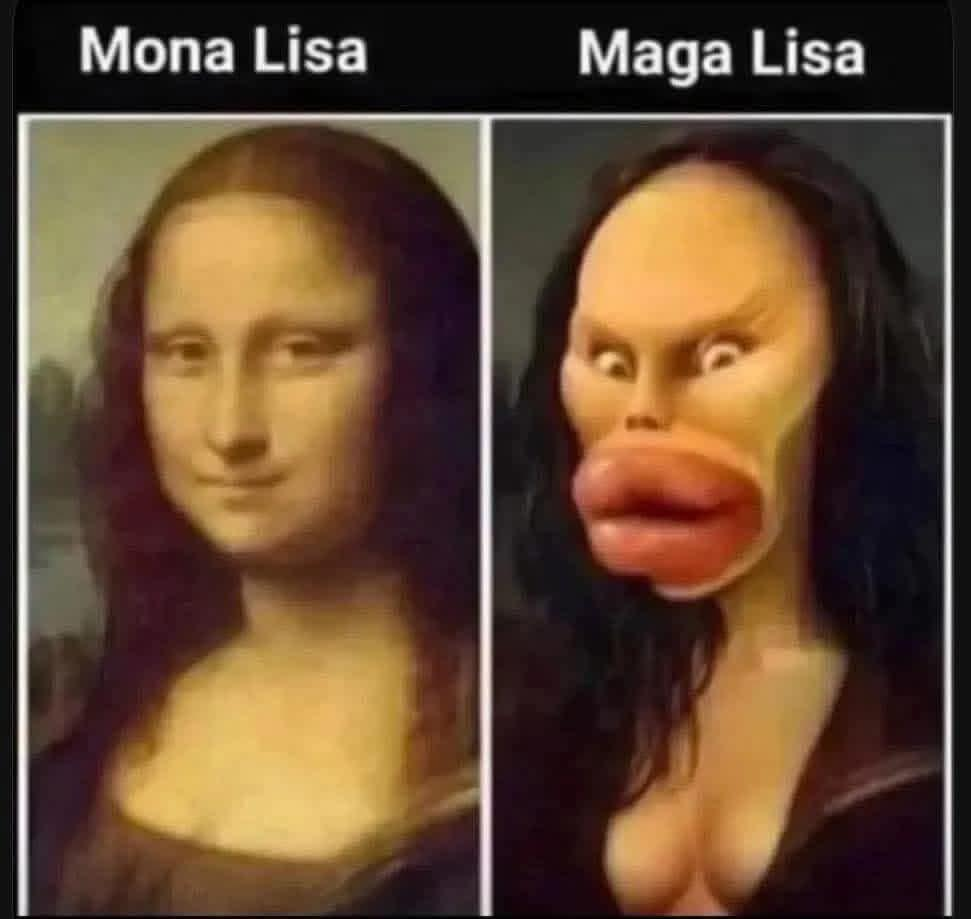 Washedupcynic@lemmy.caEnglish · 5 days agoYou've heard of the Mona Lisa, I give you the MAGA Lisaimagemessage-square40linkfedilinkarrow-up1588arrow-down134