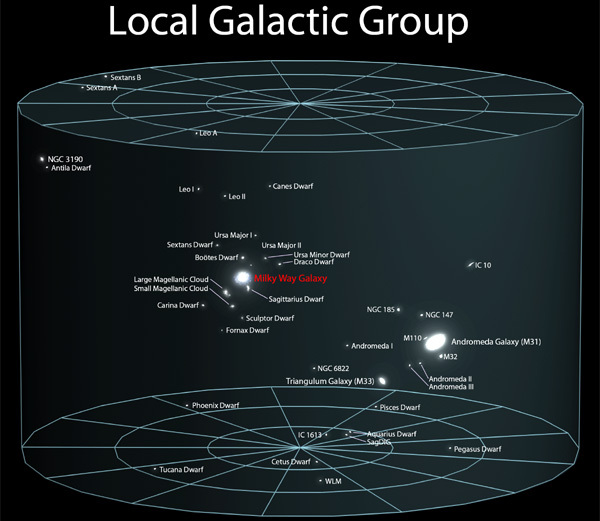 Here’s another perspective … this is our local galactic group. Our nearest galactic neighbor is the Andromeda Galaxy … it’s located about 2 million light years from us. Again, if you could travel at the speed of light (which is impossible), it would still take you 2 million years to get there.