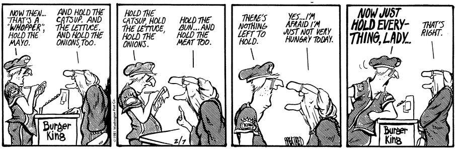 I wanted a Good Burger with nothing on it, you just gave me a bun. You said you wanted nothing on it. I at least wanted a meat patty. A meat patty is something, you said nothing.