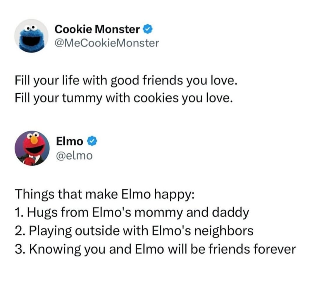 Trust the all-knowing Elmo. He’s your friend, forever and always.