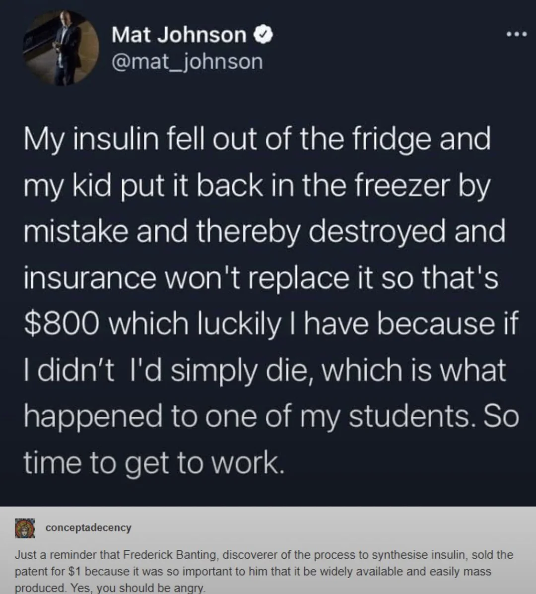 I’m not diabetic and the situation with insulin fills me with a white hot rage.